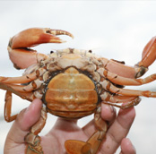 每逢炎夏,青母蟹會(huì)在產(chǎn)卵時(shí)棲身于淺灘河畔,在陽(yáng)光的照射下,體內(nèi)的蟹膏分解成金黃色的油脂,然后滲透到體內(nèi)的各個(gè)部分,使得整只蟹晶瑩剔透、充滿黃油,因此被稱為黃油蟹。